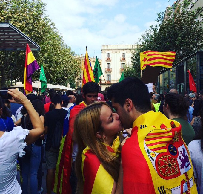 Superado el acceso de seguridad, y mientras el secretario general de Podemos ya se dirigía hacia el convoy, los gritos han cambiado por un reiterado "¡Viva España y viva Cataluña!", uno de los lemas más coreados en la manifestación celebrada en Barcelona.
