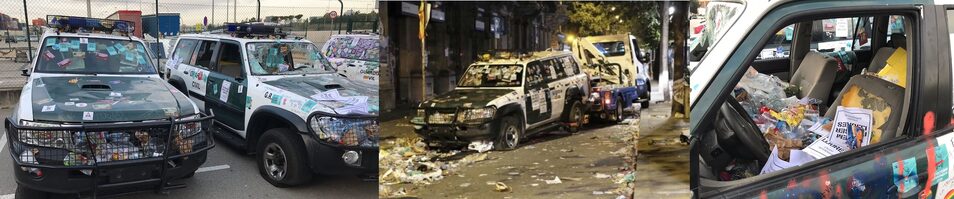 En una de esas peticiones, se traslada a la intendente de los Mossos la necesidad de proteger los tres coches que habían quedado fuera y que ya estaban rodeados. Se le dijo que los coches tenían "armas largas" y que si los manifestantes accedían a los vehículos "podría incrementarse la amenaza de forma muy importante". La intendente respondió, según el guardia, que no podía hacer nada y que su intención era "mantener la situación".
